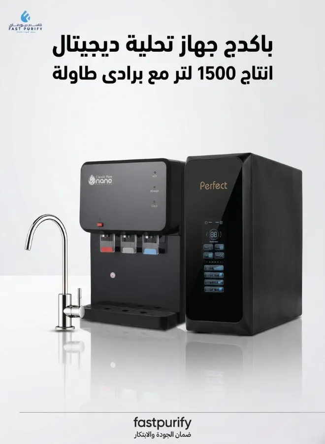 هل تبحث عن حل شامل يجمع بين تنقية المياه وتبريدها وتسخينها في آنٍ واحد؟ باكدج فلتر مياه ديجيتال 400 جالون + برادة طاولة 3 صنبور من فاست بيوريفاي يوفّر لك مياه صحية نقية 100% مع إمكانية الحصول عليها باردة أو فاترة أو ساخنة — بدون قوارير، بدون خزان، وبدون عناء.